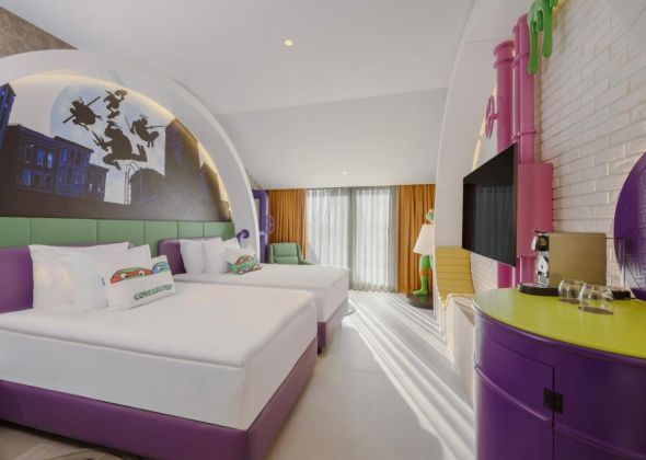 Хотелът разполага с общо 238 тематични стаи в, разположени в 7-етажна основна сграда, от които 211 Themed Deluxe Room (49-55 м2), Themed Deluxe Room Connection (2 Deluxe Room със свързваща врата помежду им – 110 м2), 21 Themed Deluxe Suite (1 спалня, 1 дневна, 2 бани – 98-110 м2), 4 Themed Junior Suite (1 спалня, 1 дневна, 1 баня - 98 м2), 1 Star Trek Iconic Suite (с тема Стар Трек, 2 отделни спални, 1 дневна, 1 стая за игри, 2 бани - 245 м2), 1 Legendary Nick Suite (с тема Nickelodeon, 2 отделни спални, 1 дневна, 1 стая за игри, 3 бани - 350 м2).