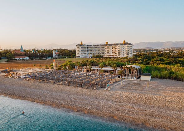 Хотелът е разположен на 90 км. от летище Анталия, на 15 км. от Сиде и 10 км. от центъра на Манавгат, на брега на морето.Построен през 2014г., с обща площ 10 000 м2, реновиран през 2019 г. Хотелът не приема домашни любимци.