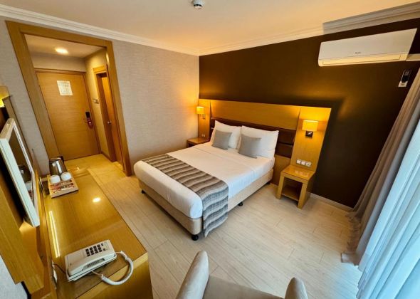 Хотелът разполага общо със 102 стаи. Всички стаи са оборудвани с климатик, телевизор, телефон, баня с душ, сешоар, мини бар, сейф, балкон. Почистване на стаите – всеки ден, смяна на спалното бельо и кърпите – 2 пъти в седмицата.