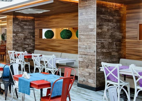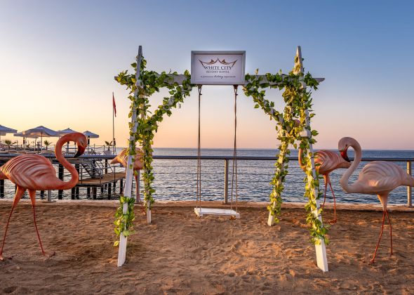 Основен ресторант, 3 а-ла-карт ресторант (световна кухня The White World Cuisine, средиземноморска кухня Terrace Taverna - безплатно, грил ресторант The Grill 16+ - срещу заплащане. Всеки ресторант изисква предварителна резервация.), кафе-бар, 4 бара, дискотека, сладкарница, 3 открити басейна (1 от които с концепция 16+) и 1 закрит басейн, 4 водни пързалки,  библиотека, кино на открито, магазини, конферентни зали, паркинг, WI-FI (в основните части на хотела), концепция за младоженци (някои услуги са платени).