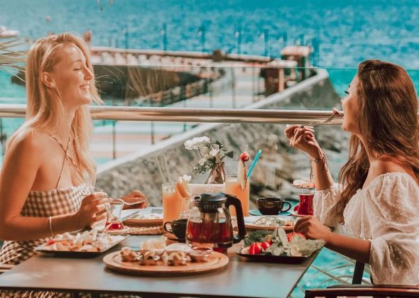 Ultra All inclusive - закуска, обяд и вечеря, междинни хранения, алкохолни и безалкохолни напитки - без лимит (съгласно концепцията на хотела).