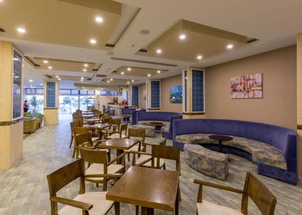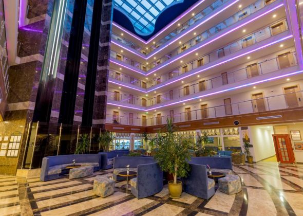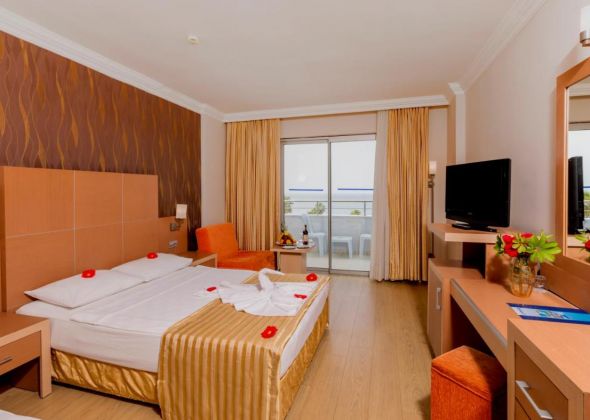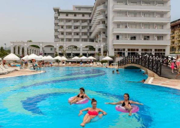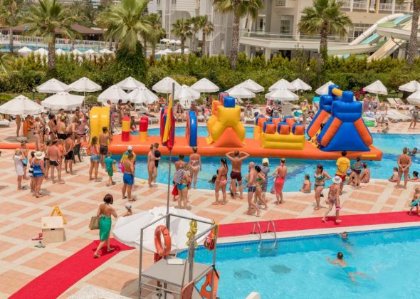 Основен ресторант, 3 бара, открит и закрит басейн, 3 водни пързалки, фризьор, 2 конферентни зали, Безплатни услуги: турска баня, сауна, аеробика, плажен волейбол, тенис ракети под наем, дартс, дискотека (напитки - платени), скуош, кану, безмоторни водни спортове. Платени услуги: Масаж, парна баня, билярд, осветление тенис корт, Интернет кафе, моторни водни спортове.