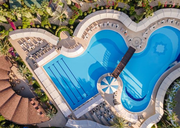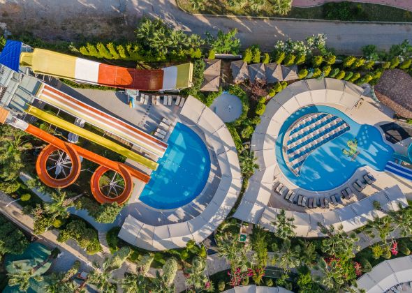 Основен ресторант, 3 а-ла-карт ресторанта (азиатски, италиански, рибен – срещу заплащане, с предварителна резервация), снек ресторант, сладкарница, 5 бара, 2 открити и 1 закрит басейн, аквапарк с 4 водни пързалки за възрастни и 2 водни пързалки за деца, амфитеатър, СПА център, дискотека, магазини, паркинг.