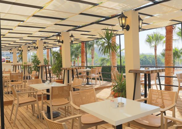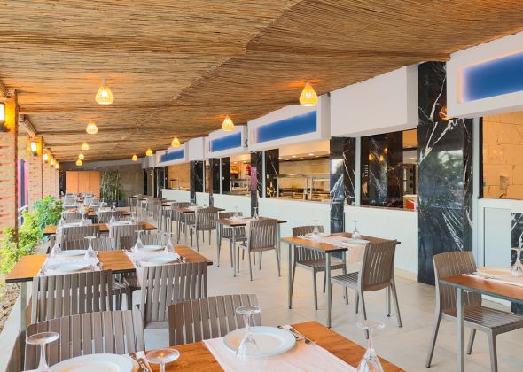 Основен ресторант, 1 а-ла-карт ресторанта (1 безплатно посещение при минимум 7 нощувки, с предварителна резервация), 1 снек ресторант, сладкарница, 3 бара, 2 открити басейна, 4 водни пързалки, СПА център, магазини, паркинг.