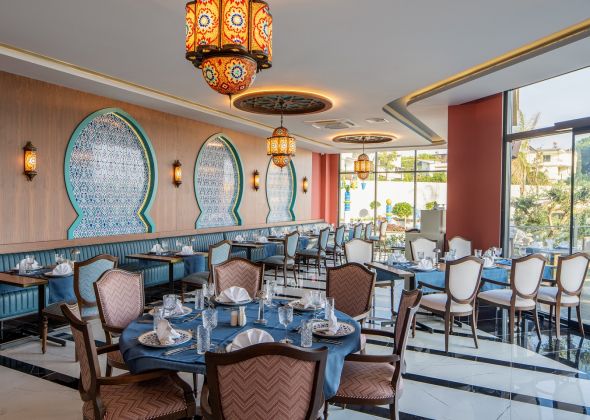 Основен ресторант, 2 а-ла-карт ресторанта (турски, италиански - срещу заплащане с предварителна резервация), сладкарница, снек бар, гьозлеме, 5 бара, открит и закрит басейн, аквапарк, СПА център, дискотека, магазини, 2 конферентни зали.