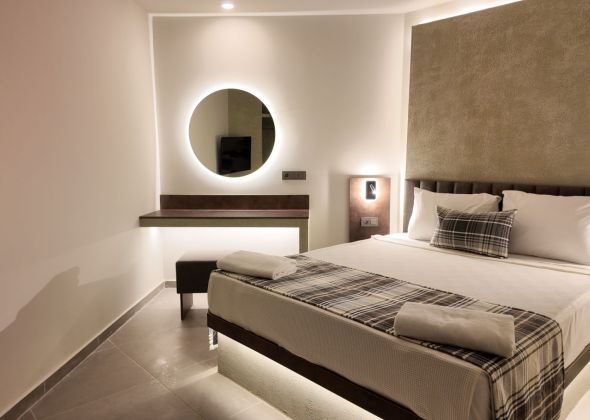 Хотелът разполага с общо 284 стаи, разположени в 6-етажна основна сграда Main building, от които: Standard land view room (изглед суша - 30 м2), Standard sea view room (изглед море - 30 м2), Jacuzzi room (41 м2), Family room (40 м2 ).