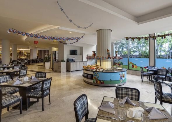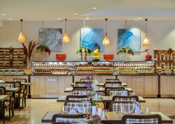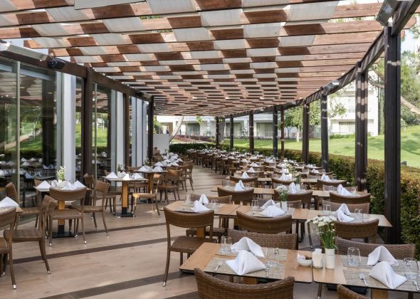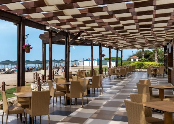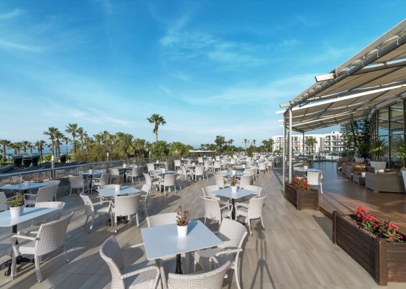 Основен ресторант, 3 а-ла-карт ресторанта (италиански, гръцки, барбекю - 1 безплатно посещение на 1 от ресторантите при минимум 7 нощувки, с предварителна резервация), 4 бара (1 от които 24-часа), 2 открити и 1 закрит басейн, 2 водни пързалки, СПА център, дискотека, магазини, конферентна зала, паркинг.