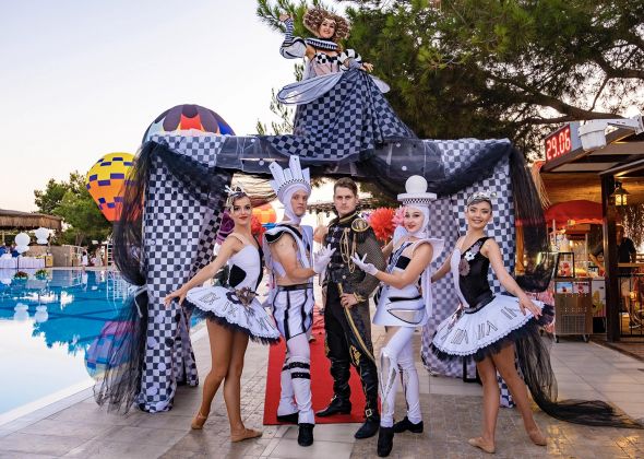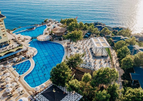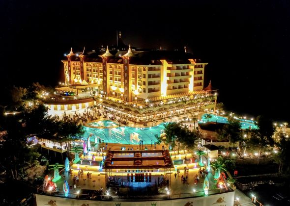 Основен ресторант, 3 а-ла-карт ресторанта (италиански, турски, рибен – срещу допълнително заплащане), 3 снек ресторанта - възможност за приготвяне на специални ястия за гости с алергии, 8 бара, сладкарница, 5 открити басейна, вътрешен отопляем басейн, аквапарк с 8 пързалки, фитнес, СПА център, магазини, 3 конферентни зали с оборудване, Wi-fi интернет – според концепцията на хотела.