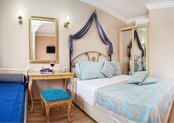 Хотелът разполага общо с 84 стаи от които 45 Standart Room Land View ( 26 кв. м.) , 39 Standart Room Pool View (26 кв.м) Всяка стая разполага с: климатик, телевизор, сейф, телефон ( срещу заплащане), мини бар, сет за чай и кафе. Стаите се почистват ежедневно. Смяна на бельо и кърпи 3 пъти седмично.