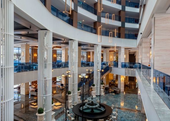 Намира се на 100 км от летище Анталия, на 110 км от центъра на Анталия, на 18 км от центъра на Алания, на 250 м от брега на морето, чрез подлез. Построен 2024 г., на обща площ от 43 000 м2. Достъп до Еftalia Island, разположен на плажа, състоящ се от аквапарк с басейни, водни пързалки и заведения.
