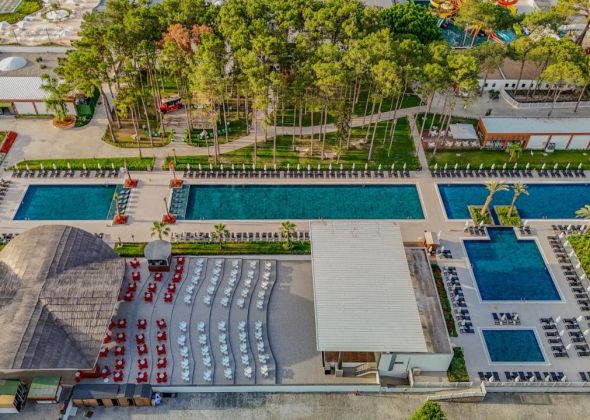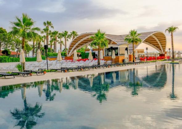 Основен ресторант, 3 а-ла-карт ресторанта (турски, италиански - 1 безплатно посещение на 1 от ресторантите при минимум 7 нощувки, с предварителна резервация; гръцки – срещу заплащане, с предварителна резервация), 2 снек ресторанта, сладкарница, 7 бара, 6 открити и 1 закрит (отопляем) басейн, СПА център, дискотека, магазини, 1 конферентна зала, паркинг.