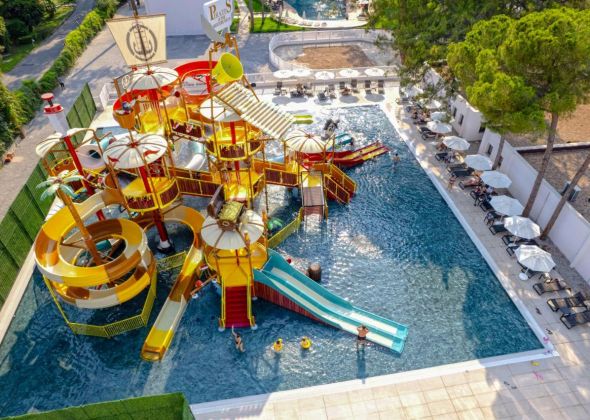 За децата: детски и бебе бюфет в основния ресторант, 1 открит и 1 закрит детски басейн, аквапарк с 8 водни пързалки за деца, мини клуб (4-12 г), мини диско, детска анимация, детска количка (с депозит).