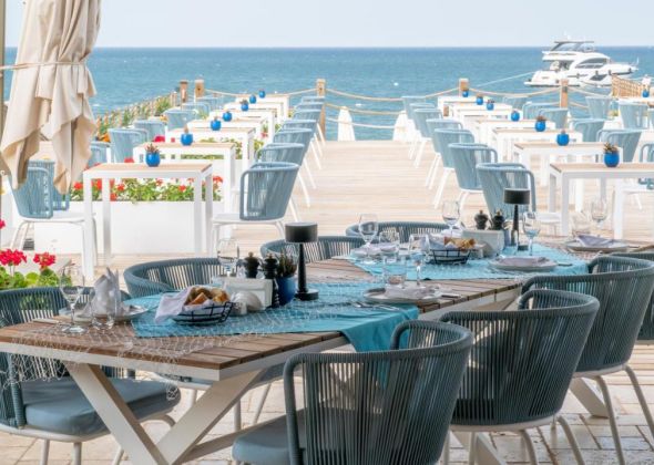 Собствен, пясъчно-чакълест. Чадъри, шезлонги и плажни кърпи на плажа и при басейна – безплатно.