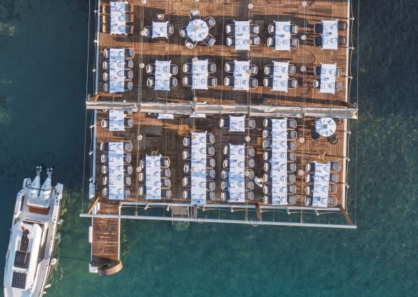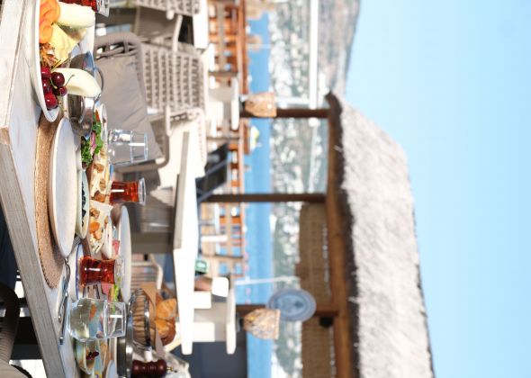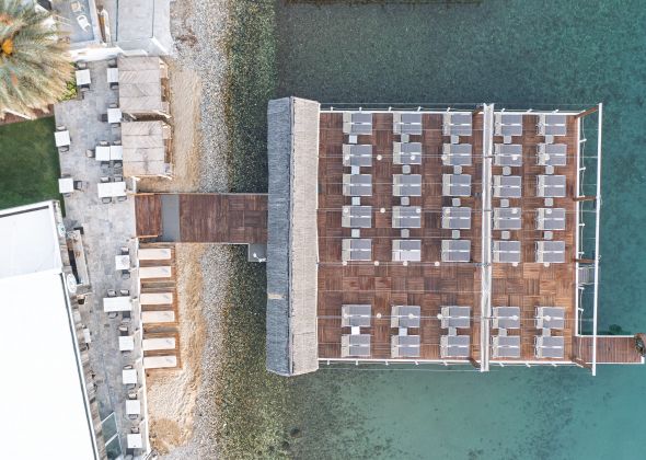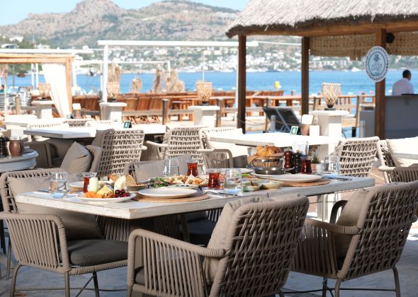 Намира се на 44 км от летище Бодрум, на 18 км от центъра на Бодрум,в района на Тюркбюкю, на брега на морето. Реновиран 2025 г.
