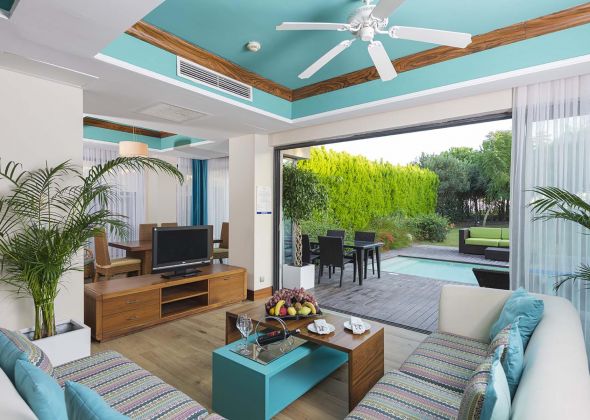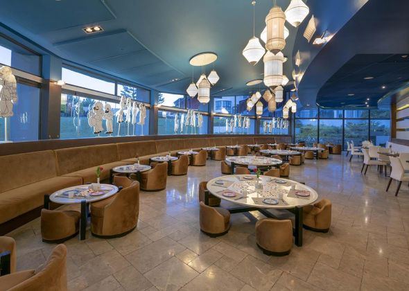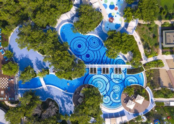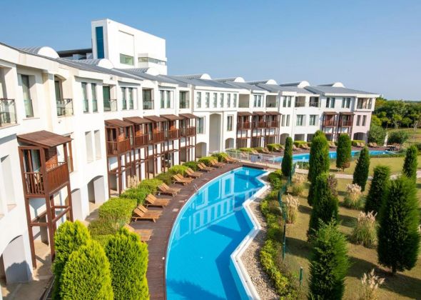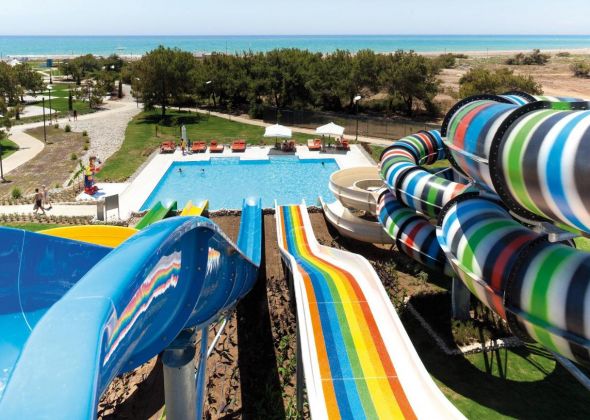Основен ресторант, 3 а-ла-карт ресторанта (рибен, турски и италиански), 6 бара, външни басейни, японски басейн, вътрешен басейн, водни пързалки, СПА център, анимация, фитнес, турска баня, сауна, масажи, тенис корт, тенис на маса, водни спортове, пилатес, дартс, плажен волейбол, WI-FI, паркинг. За децата: мини клуб, мини диско, пяна парти, анимация. Плаж: собствен , пясъчен. Чадъри и шезлонги при басейна и плажа - безплатно.