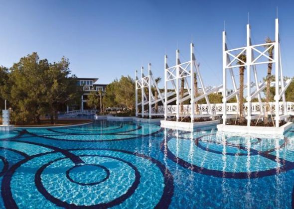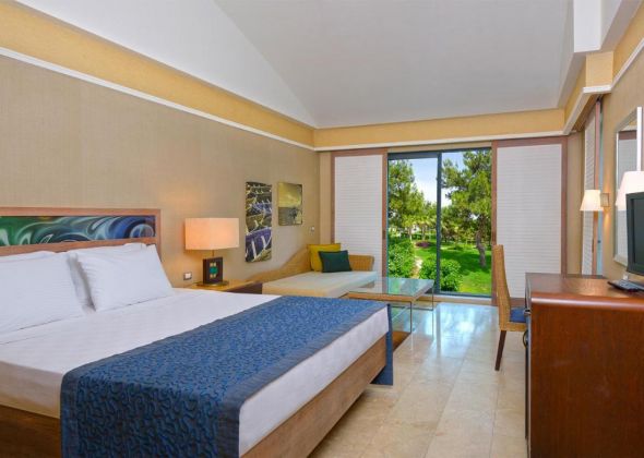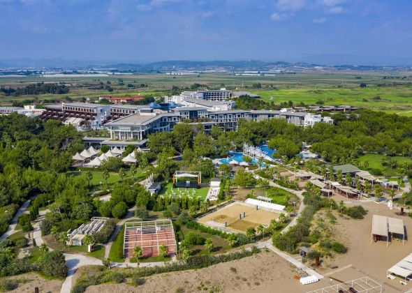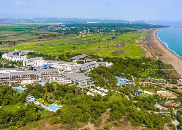 Хотелът се намира на 46 км. от международното летище в Анталия, на 54 км. от центъра на града, на брега на морето. Намира се в топ 100 на най-добрите GOLF хотели в света. Хотела е разположен на 1.000.000 m2, като 600 000 кв. м. са игрища за голф с гледка към плажната ивица.