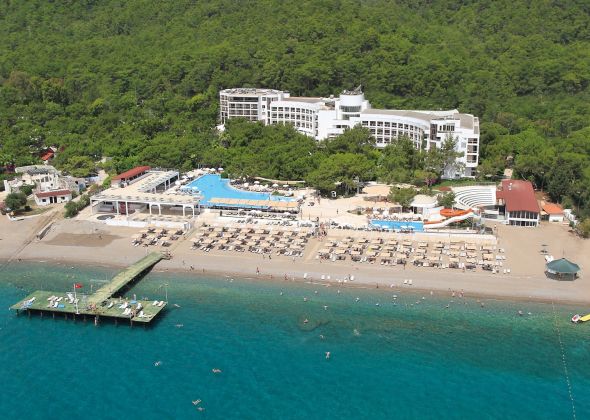 Намира се на 46 км. от летище Анталия, на 36км от центъра ан Анталия и на 6 км. от центъра на Кемер, в селището Гьойнюк, на брега на морето. Построен през 1991 г., с обща площ 34 000 м2, последно реновиран през 2018 г.