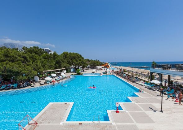 Основен ресторант, А-ла карт ресторант ( безплатен с предварителна резервация), 4 бара, 2 тенис корта, открит басейн с пързалка, анимация, мини клуб (4-12), детски басейн, СПА център, фитнес, конферентна зала, шопинг център.