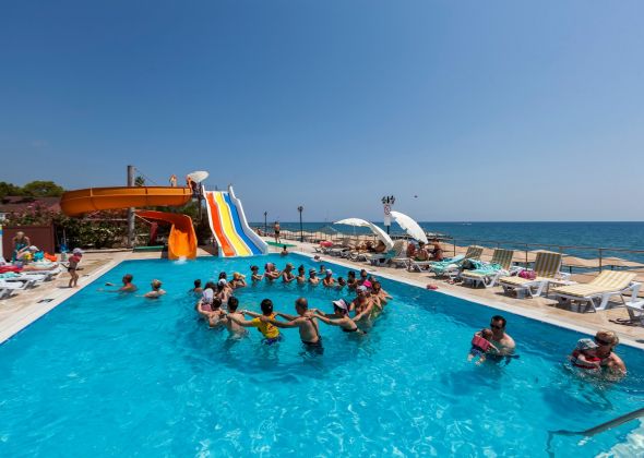 Безплатни услуги: хамам, сауна, фитнес, дартс, плажен волейбол, мини-голф, тенис корт, Wi-Fi - в лобито на хотела, водна гимнастика