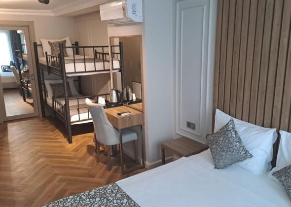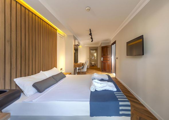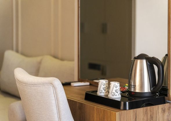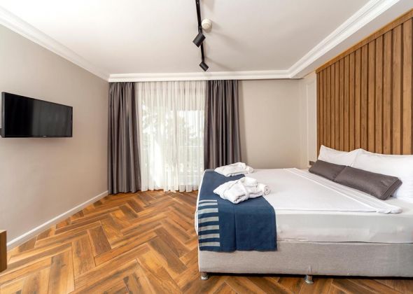 Всички стаи са оборудвани с климатик, телевизор, телефон, баня с душ, сешоар, мини бар (зарежда се еднократно с безалкохолни напитки и вода в деня на настаняване), сет за кафе/чай, сейф (безплатно), Wi-Fi, балкон. Почистване на стаите - всеки ден, смяна на спално бельо и кърпи - 2 пъти в седмицата.