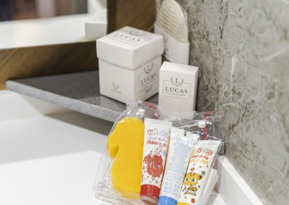 За децата: детски басейн, водна пързалкa (10:30-12:00 & 14:00-16:00), детска площадка, мини клуб (4–12 г.), мини диско.