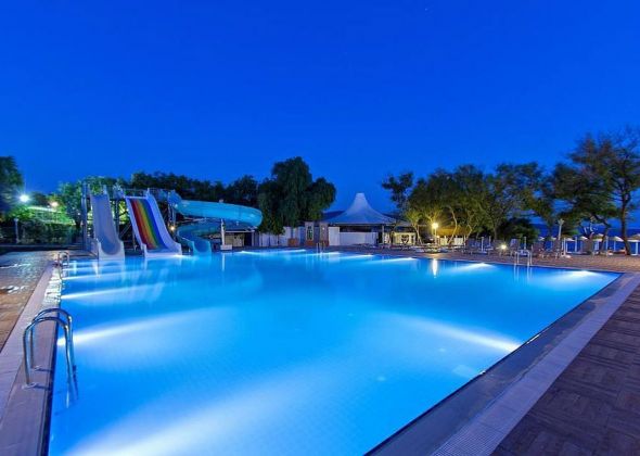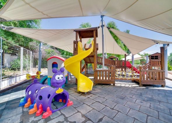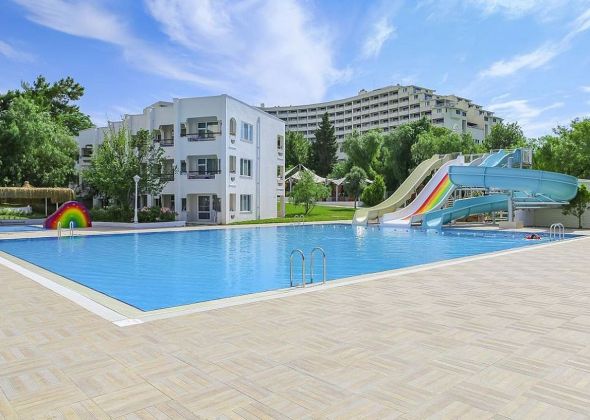 За децата: детски басейн, водни пързалки, детска площадка, мини клуб (4–12 г.)