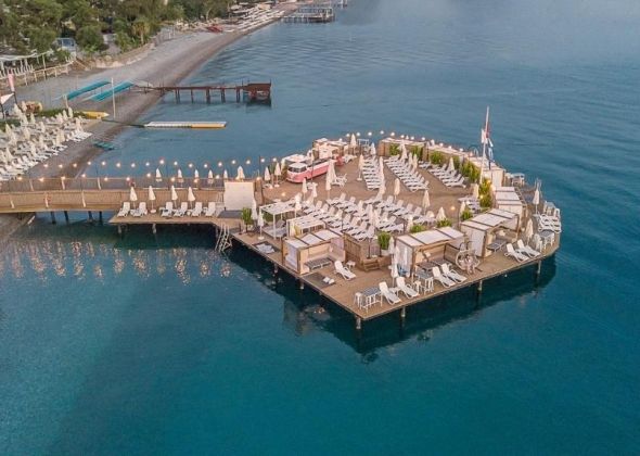 Намира се на 57 км от летище Анталия, на 40 км от центъра на Анталия, на 500 м от центъра на Кемер, на брега на морето. Построен 2018 г., на обща площ от 17 000 м2.