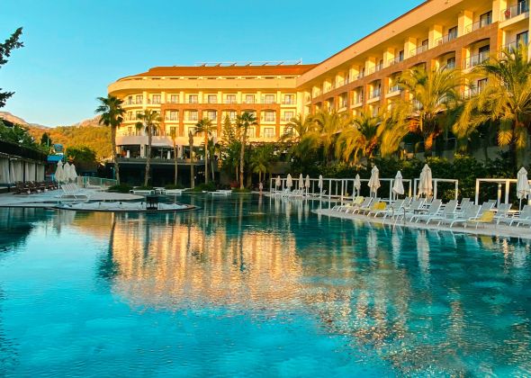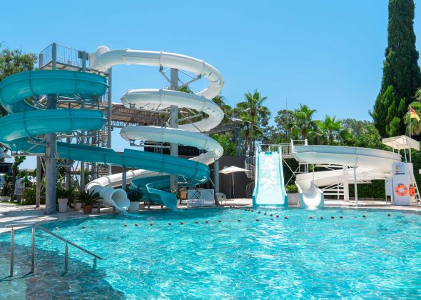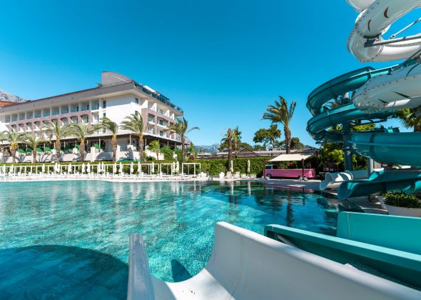 Основен ресторант, 5 а-ла-карт ресторанта (рибен, турски, италиански, барбекю, стек – 1 безплатно посещение при минимум 7 нощувки), сладкарница, 7 бара, открит  и закрит (отопляем) басейн, закрит (отопляем) басейн с джакузи, аквапарк, амфитеатър, СПА център, дискотека, магазини,  конферентна зала.