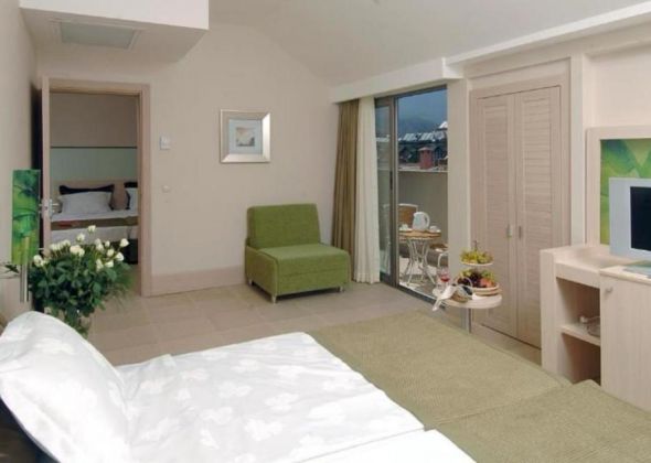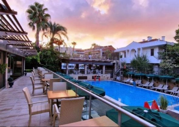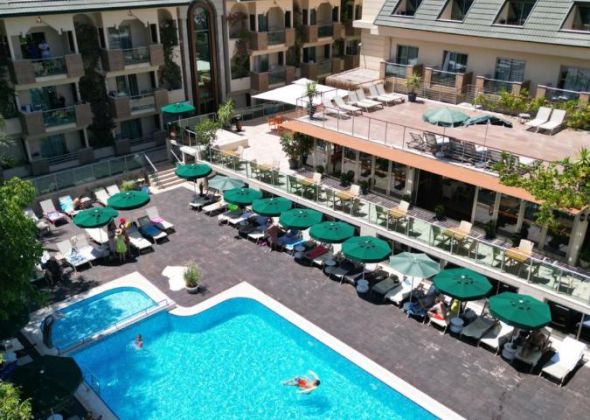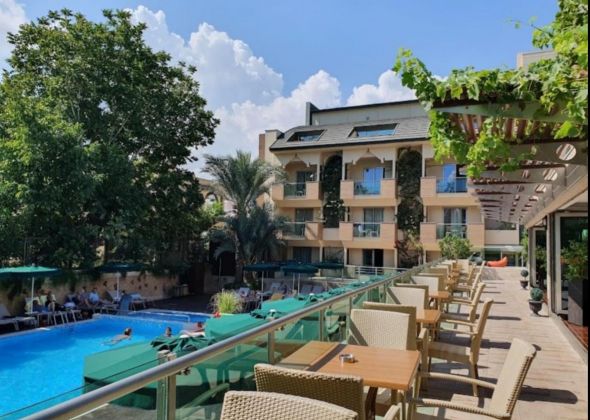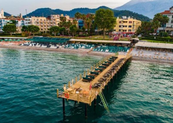 Намира се на 60 км. от летище Анталия, на 40 км. от центъра на Анталия, в района на Кемер, на 50 м. от брега на морето, през път. Открит 2007 г., реновиран 2018 г. (общи части), с обща площ 9 000 кв.м.