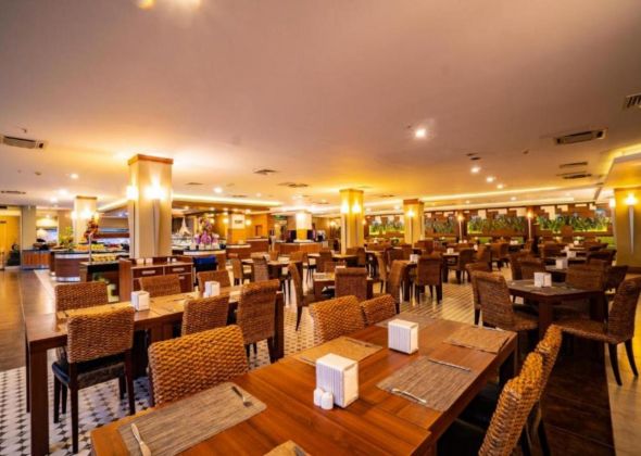 Основен ресторант, а-ла карт ресторант (срещу заплащане), 4 бара, 2 открити басейна, конферентна зала.