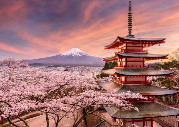 Ако има нещо по-прекрасно от самата Япония, която съчетаваща по изумителен начин модерното и вечната традиция, то това е Япония през пролетта, когато безбройните вишневи дървета наричани Сакура, се покриват с деликатен розов воал, и всеки бистър поток или езеро нежно отразява ефирната им красота.