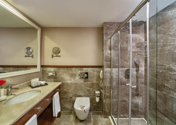 Стаи Main Building: 29 Eco Room (без балкон - 18 м2), 425 Standard Room (20-24 м2), 44 Connection Room (2 отделни спални, 40-48 м2), 21 Family Suite (2 отделни спални - 48-50 м2), 6 Suite ( спалня, хол, джакузи - 50 м2).