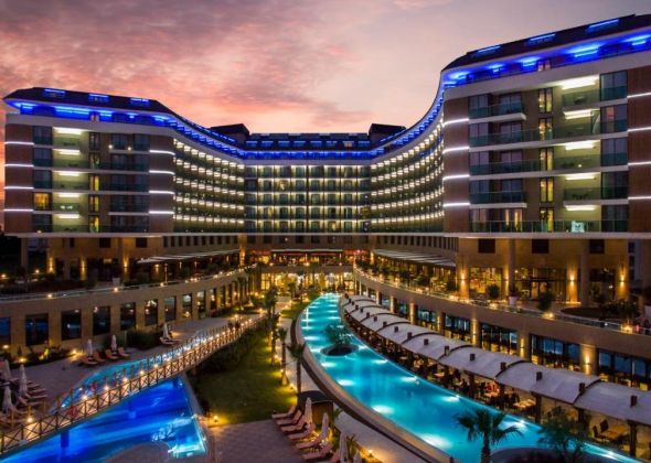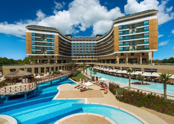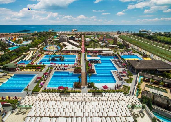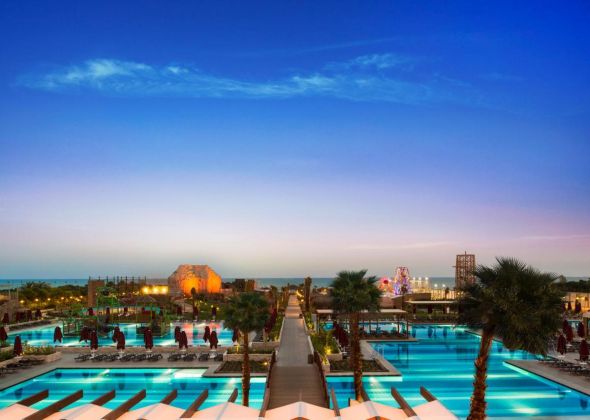 Основен ресторант, 6 а-ла-карт ресторанта (италиански, азиатски, рибен, турски, стек хаус – срещу заплащане; бистро с интернационална кухня - 1 безплатно посещение на 1 от ресторантите при минимум 7 нощувки, с предварителна резервация), 3 снек бара, сладкарница, 9 бара, 4 открити басейна (1 отопляем), 1 закрит отопляем басейн, аквапарк с 9 водни пързалки, СПА център, амфитеатър, открита дискотека, кино, магазини, 5 конферентни зали, паркинг.