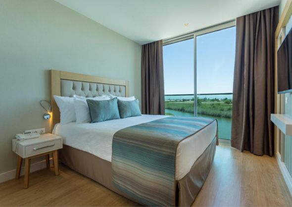 Стаи River Side (Anex): 86 Standard Room (отделни спалня и дневна, без балкон - 29 м2), 20 Family Room (2 спални, без балкон - 32 м2).