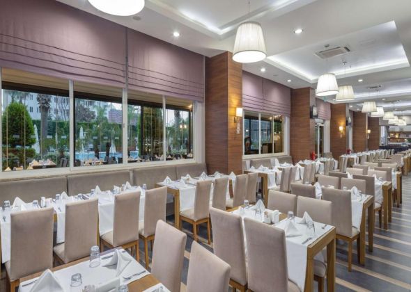 Основен ресторант, 6 а-ла-карт ресторанта (рибен, турски, италиански, азиатски, мексикански – 1 безплатно посещение на 1 от ресторантите при минимум 7 нощувки, барбекю - платен), сладкарница, 6 бара, снек ресторант, 3 открити и 1 закрит басейн, 4 водни пързалки, амфитеатър, СПА център, магазини, паркинг.