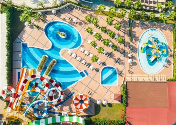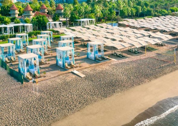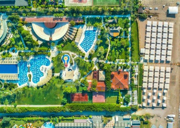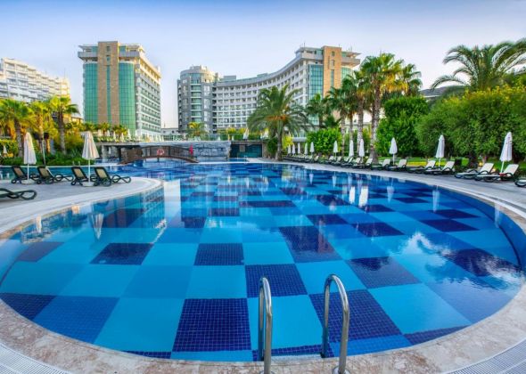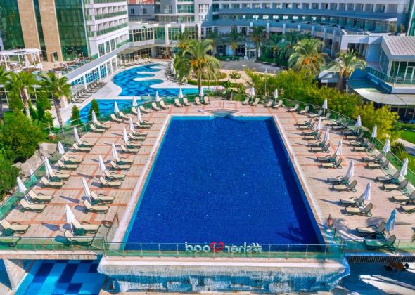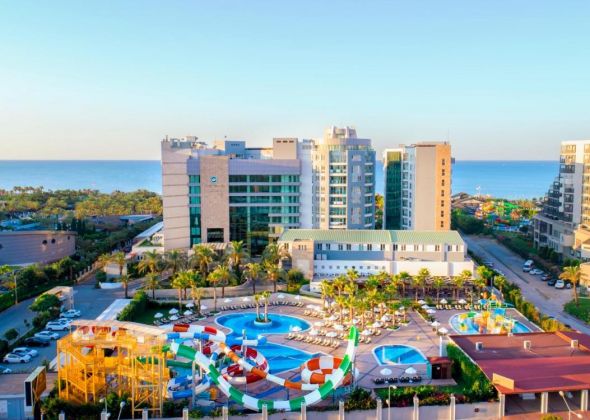 Хотелът се намира на брега на морето, в района на Лара, на 12 км. от центъра и 10 км. от летището на Анталия. Построен е през 2005г. и е последно реновиран 2019-2020г. с обща площ от 33 000 кв.м.