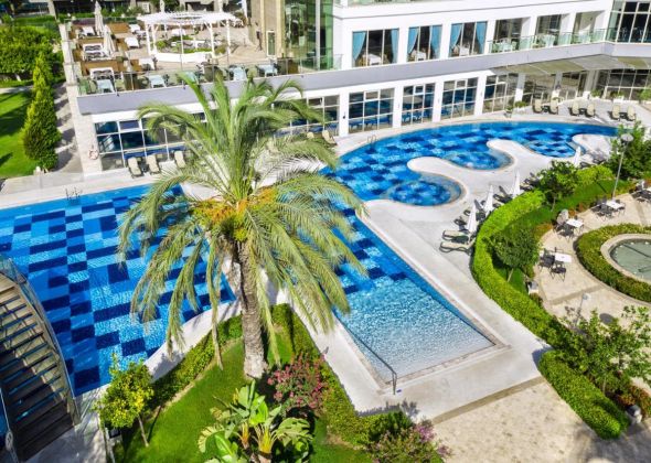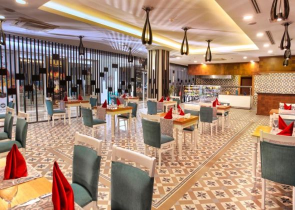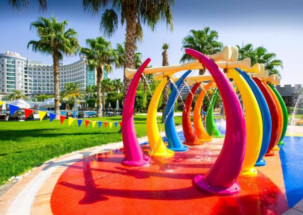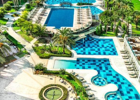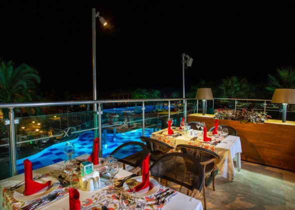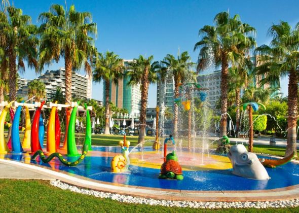 Основен ресторант, 9 бара - един от които е платен, диско бар, 4 а-ла-карта ресторанта (азиатски, италиански, рибен, турски - платени с предварителна резервация), 6 басейна, детски басейн, водни пързалки, вътрешен басейн, конферентна зала, боулинг, игрална зала, магазини, фитнес център, СПА център, амфитеатър, анимация, мини клуб (4-12г.), тийн клуб (12-16г.), WI-FI.