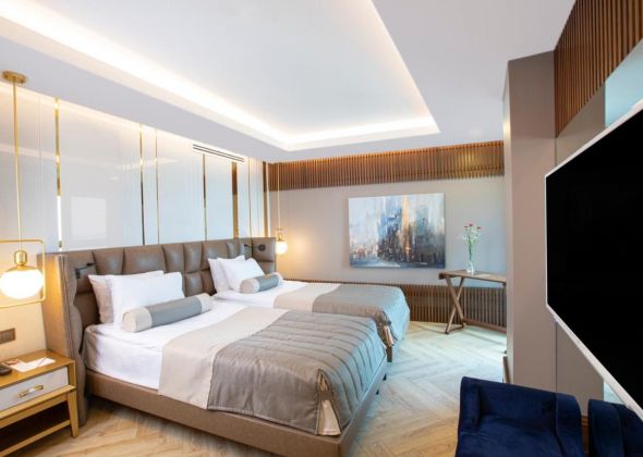 Хотелът разполага с общо 499 стаи, като всички са оборудвани с климатик, интернет (безплатен), телевизор, телефон, сейф, мини бар (безплатен), сет за чай/кафе, баня с душ/вана, сешоар, балкон. Смяна на спалното бельо - 3 пъти седмично.