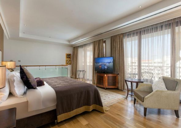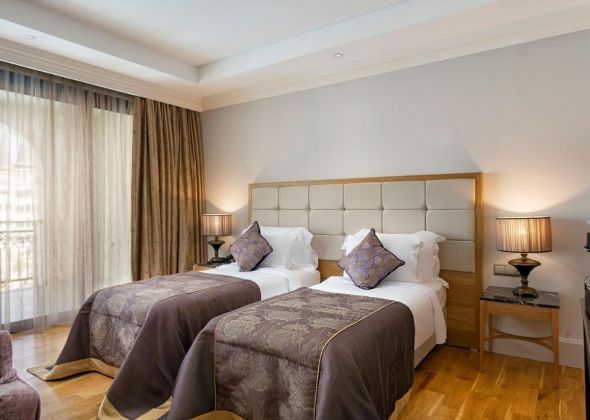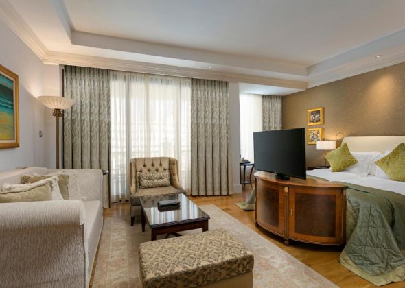 Хотелът разполага с 546 стаи. Всички стаи са оборудвани с: централен климатик, сешоар, душ, телевизор, телефон, мини бар (безалкохолни и алкохолни напитки, зареждат се ежедневно, безплатно), сейф (безплатно), безжичен интернет, балкон или тераса. Почистване на стаята – ежедневно, смяна на спалното бельо – ежедневно.