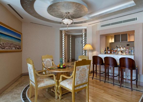 Основен ресторант, диетична храна, вегетарианска храна, 7 ресторанта а - ла - карт: японски, рибен (с предварителна резервация, платено) руски, турски, средиземноморски, тайландски, ресторант Brasserie - традиционна френска и американска кухня, с предварителна резервация с такса), 11 бара (един от които работи 24 часа), 2 открити басейна (един с морска вода във формата на подводен риф (Swim Reef) с екзотични риби, платено), 2 закрити басейна (един с морска вода, платено), кино, лекарски кабинет, SPA & Thalasso-център, фризьор, магазини, пералня, химическо чистене, 2 банкетни зали, 17 конферентни зали, бизнес център.