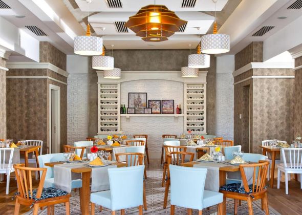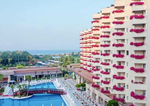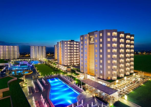 Намира се на 14 км от летище Анталия, на 10 км от центъра на Анталия, на 8 км от центъра на Лара, на 200 м от брега на морето. Построен 2013 г., на обща площ от 35 000 м2. Реновиран 2016 г.