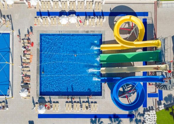 За децата: Детско меню, 1 открит детски басейн, детска площадка, мини клуб (4-12г), мини диско, детска анимация.