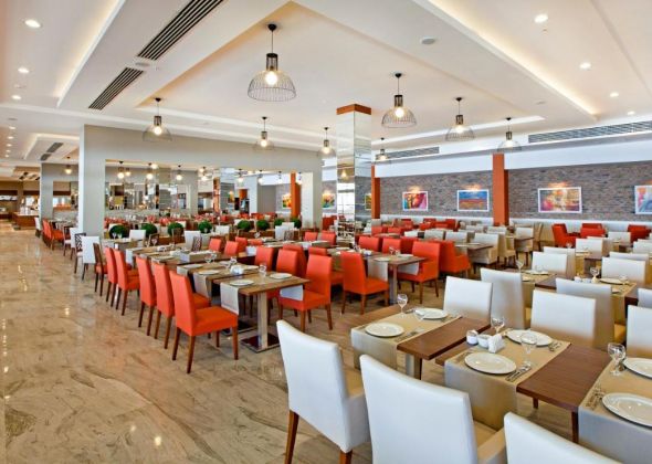 Основен ресторант, 2 а-ла-карт ресторанта (интернационален, морски - срещу заплащане, с предварителна резервация), сладкарница, 6 бара (лоби бар 24/7, втори лоби бар, бистро бар, пъб, бар на басейна, плажен бар), 3 открити басейна, 4 водни пързалки, СПА център, паркинг.
