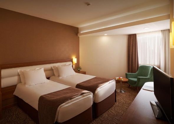 Този луксозен термален хотел се намира в тих район в Памуккале. Древногръцкият град Хиераполис /в превод Свещен град / и травертините на Памуккале, които са в списъка на световното културно наследство на ЮНЕСКО, са на 3 километра. Richmond Pamukkale Thermal разполага с градина с борови дървета, открит басейн и СПА център. Стаите в 5-звездния Richmond Pamukkale Thermal са оборудвани с плоскоекранен телевизор със сателитни канали и самостоятелна баня с луксозни тоалетни принадлежности,халати за баня. Гостите могат да се насладят на богат асортимент за закуска и изискани турски специалитети и международни ястия в ресторанта, който предлага изглед към градината. Има също бар край басейна, кафене и бар Rich и бар Fireplace, където гостите могат да се насладят на а ла карт меню и разнообразие от напитки. В СПА центъра Vital Bar се предлагат билкови чайове и органични напитки. Закритият термален басейн включва фини минерални води с богати минерали. СПА центърът на място разполага с турска баня, сауна, приключенска пещера и фитнес зала. Richmond Pamukkale Thermal разполага с модерна фитнес зала, оборудвана с кардио оборудване и тежести. Другите удобства включват зала за игри с табла, интернет кафе и тенис на маса. В градината има също зони за баскетбол, плажен волейбол, стрелба с лък, въздушен хокей, бадминтон, бочия, джаги и мини голф. В басейните се влиза с бонета!